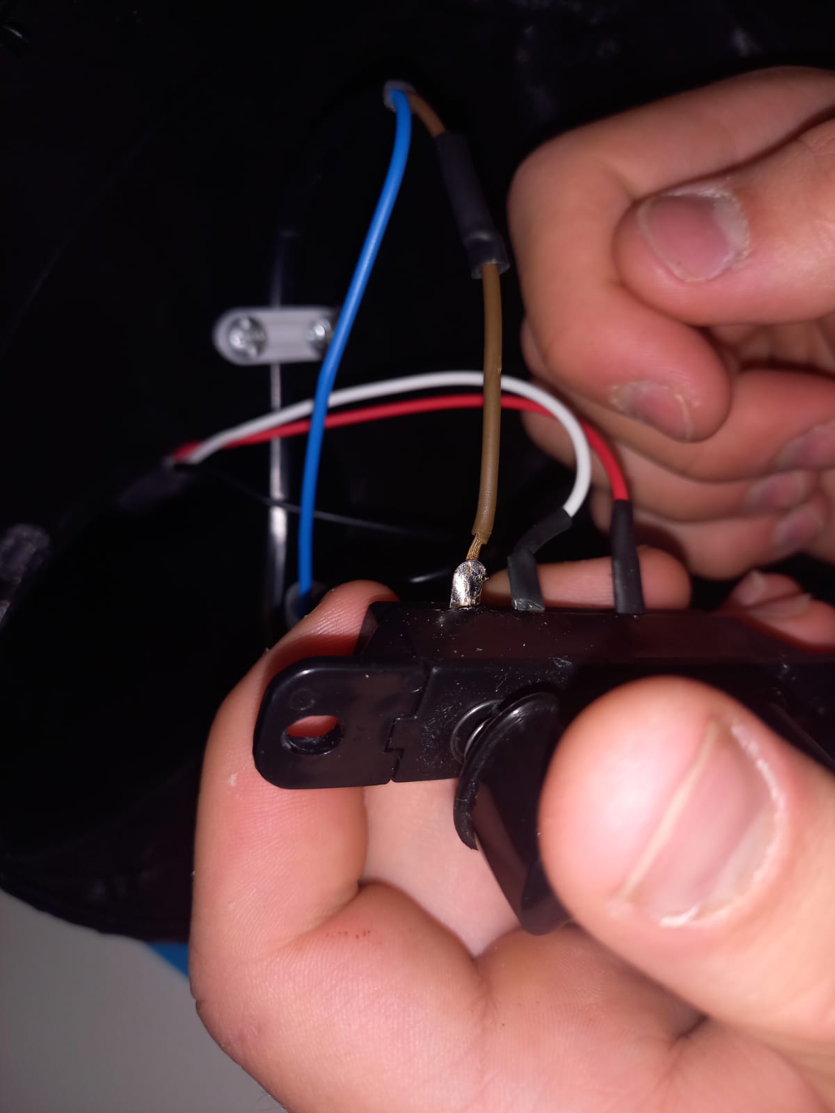 Anlöten der Zuleitung mit Lötkolben (Pollin Electronic; Best.Nr. 840134) durch bleifreies Lot. Dazu wurde die Litze mit dem Seitenschneider (Z12109) gekürzt und mit der Abisolierzange (Knipex 11 05 160) 8mm abisoliert. Anschließend wurde die Litze mit Lot benetzt. Schrumpfschlauch über das Kabel gezogen und Litze an Kontakt angelötet. Danach wurde der Schrumpfschlauch über die Lötstelle gezogen und mit einem Heißluftfön (Proxxon- MH 550) geschrumpft.